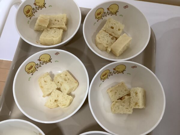 保育園のフライは油で揚げるのではなく、周りに煎りパン粉を付けてオーブンで焼いています。